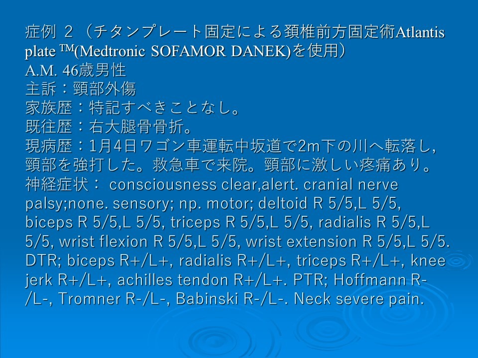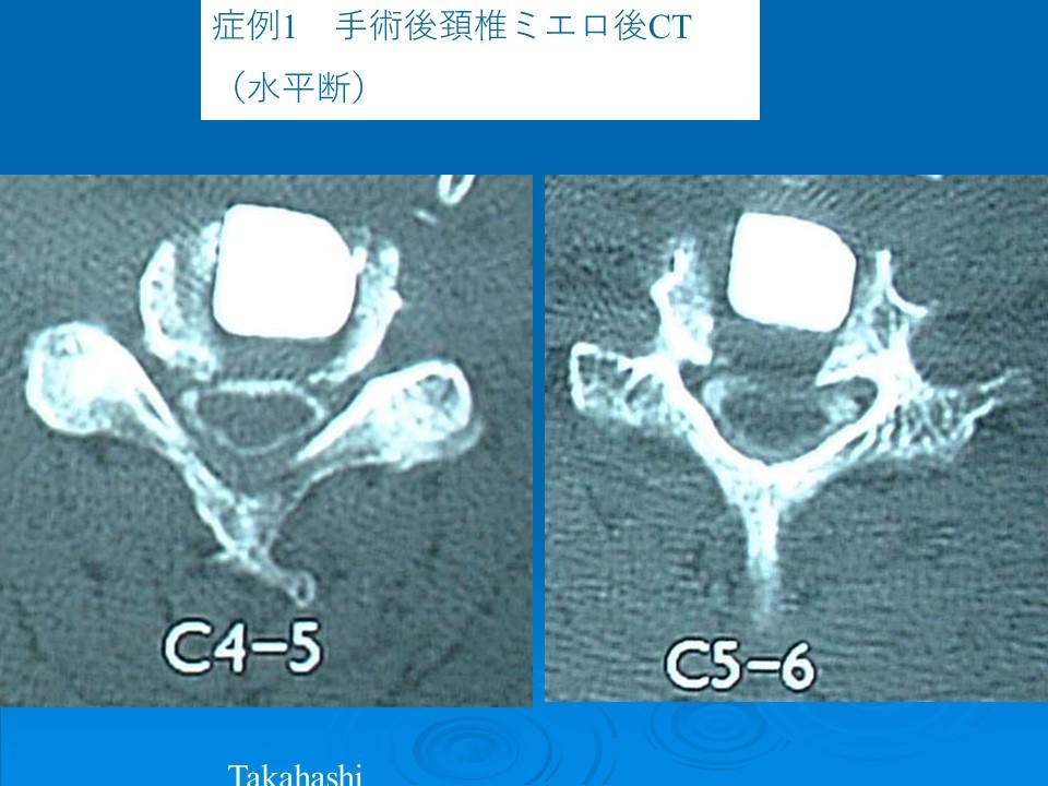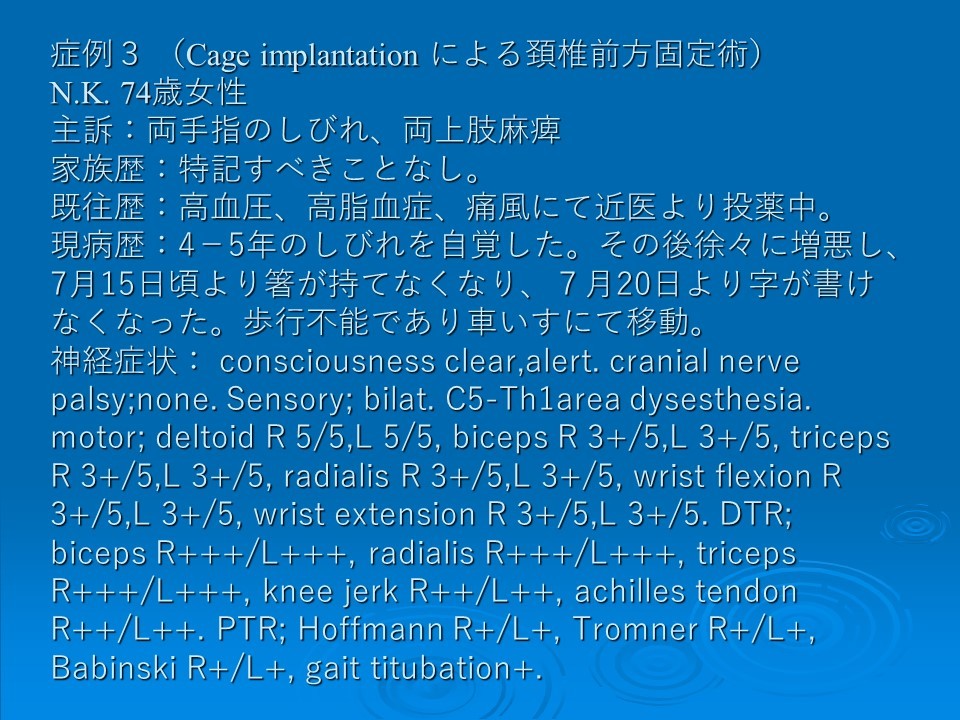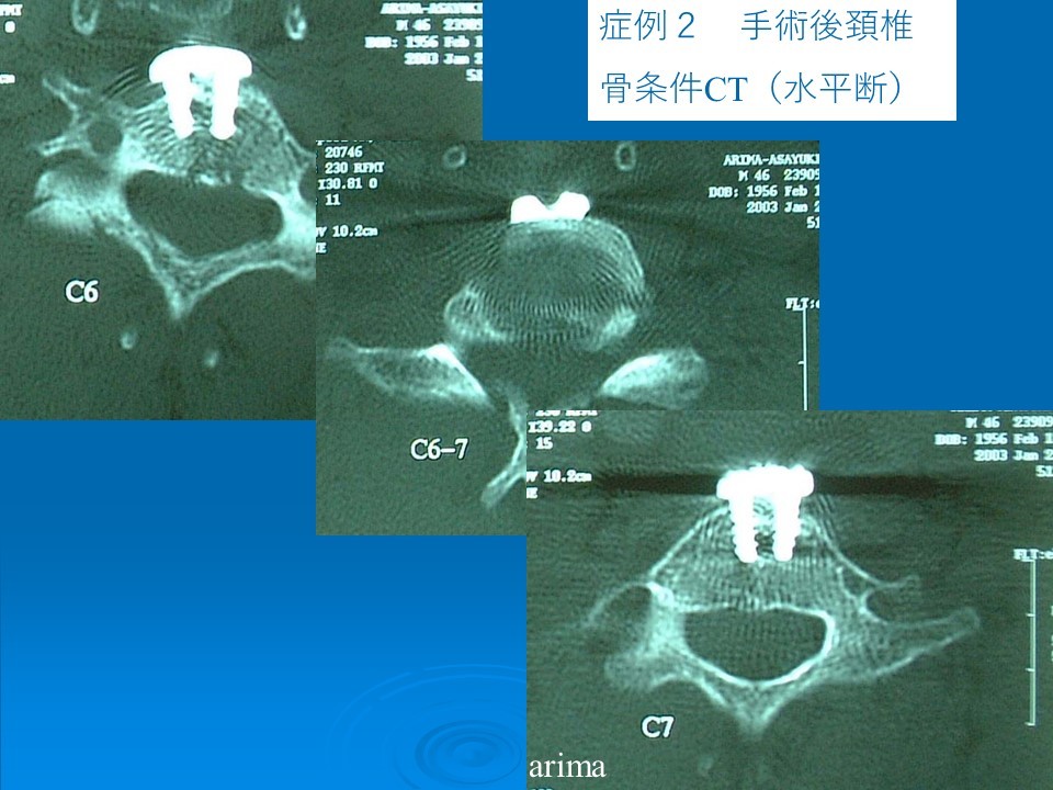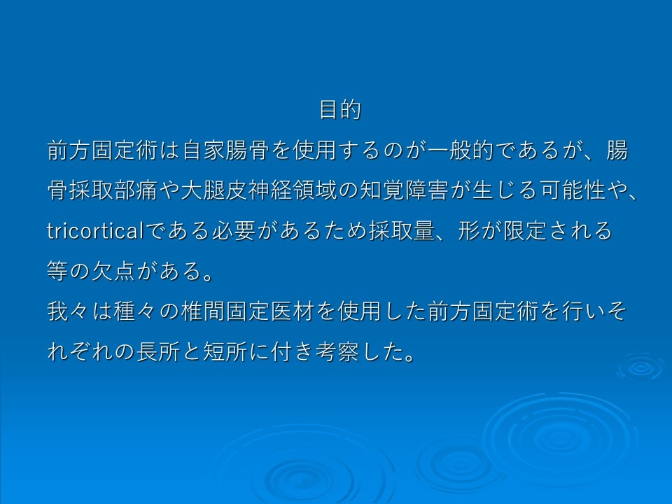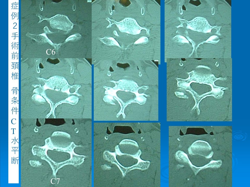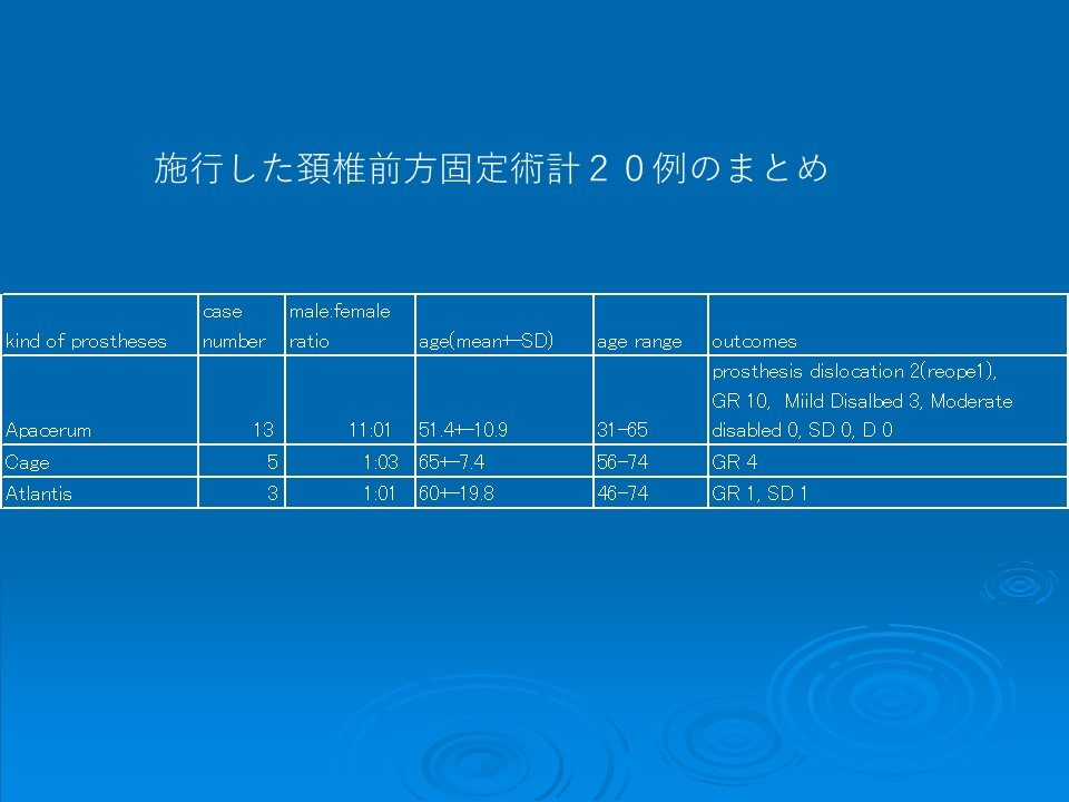 頸椎症に対する手術法は大きく分けて前方よりのアプローチと後方からの椎弓形成術に分けられます。前方アプローチは頚椎症の病態を考えると後方アプローチより理にかなった術式であり、自然な前彎をたもつことができます。顕微鏡下で椎間板を摘出し、椎間板面の椎体をドリルで薄く削開し、さらに後方骨棘をドリルで削除し、自家骨(腸骨という腰の前外側の骨をとります)もしくは人工骨(アパセラム、チタンケージ、プラスチックケージ等)を使用して椎体間固定を行います。