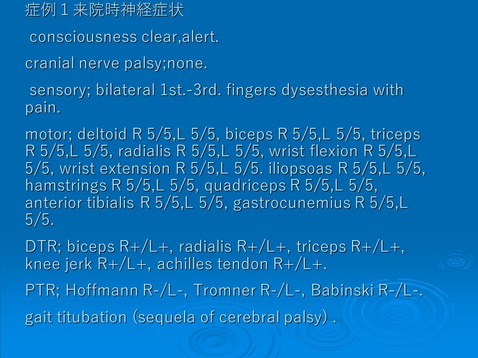 頸椎の変性疾患(骨の変形と椎間板のとびだし=椎間板ヘルニア)は年齢とともに徐々に増え、また首のけがで頸椎の変形・骨折、椎間板ヘルニアが生じると頸髄の圧迫により様々な神経症状がでてきます(手足の感覚障害や麻痺など)。神経症状に合致する頚椎症病変が画像診断で裏付けられた場合に手術の対象となります。