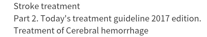 I wrote a section on "Treatment of Cerebral Hemorrhage" to be able to refer to the summary of the cerebral hemorrhage treatment for private practitioners and working doctors.