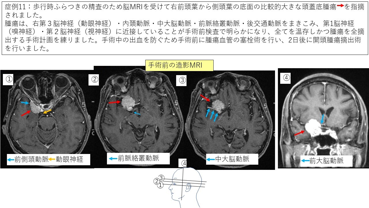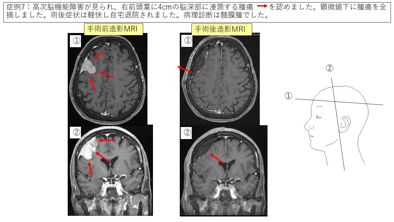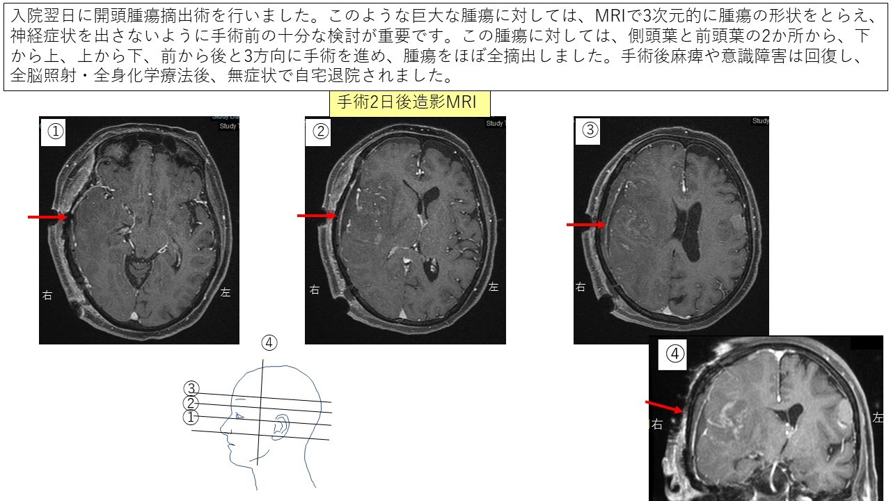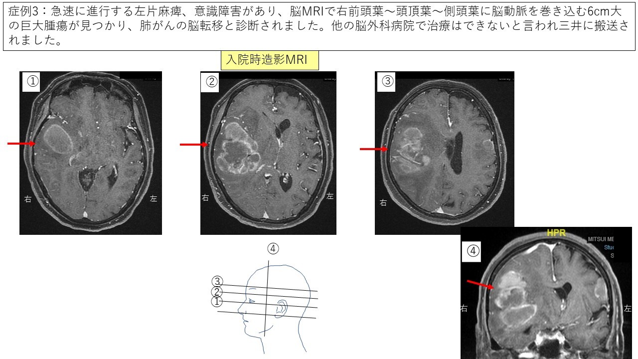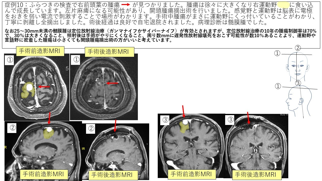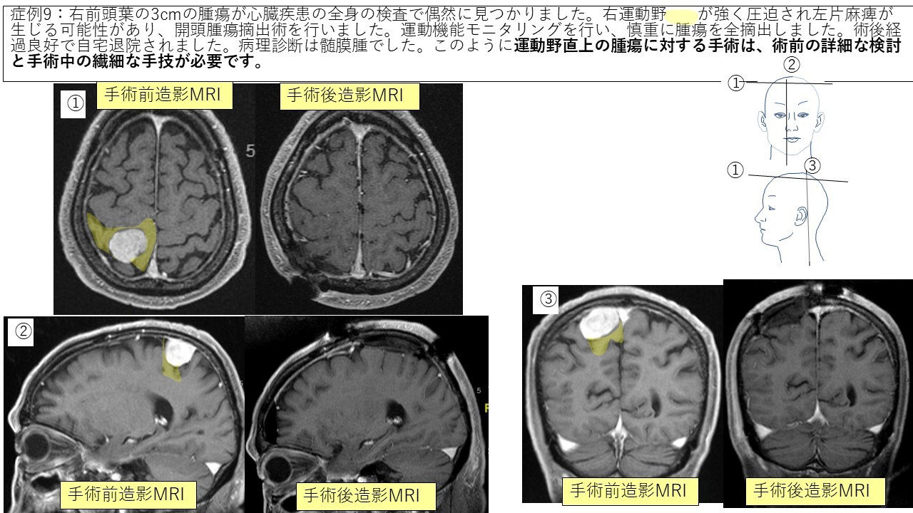 実際に最近三井記念病院で手術を受けられた脳腫瘍の患者さんの経過をお示しします(術者は全て中口です)。