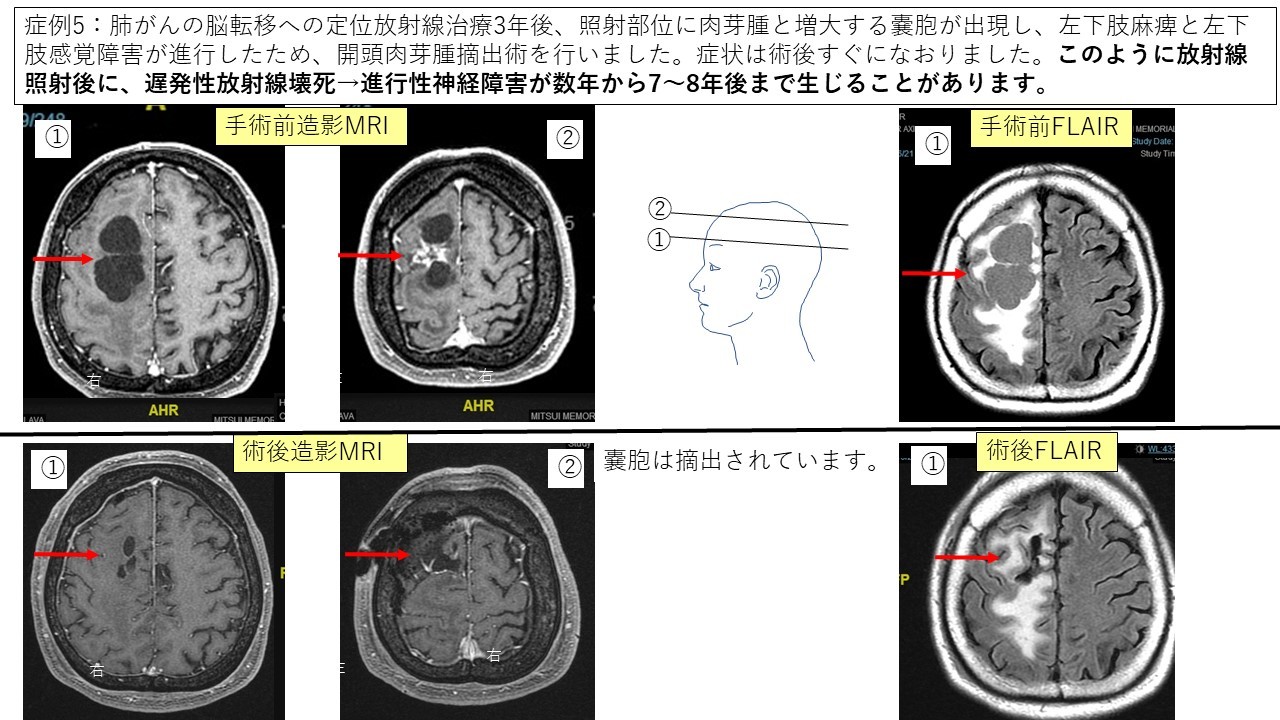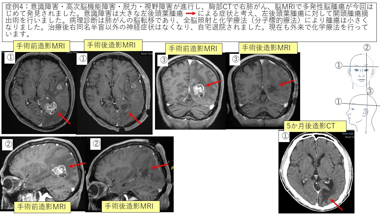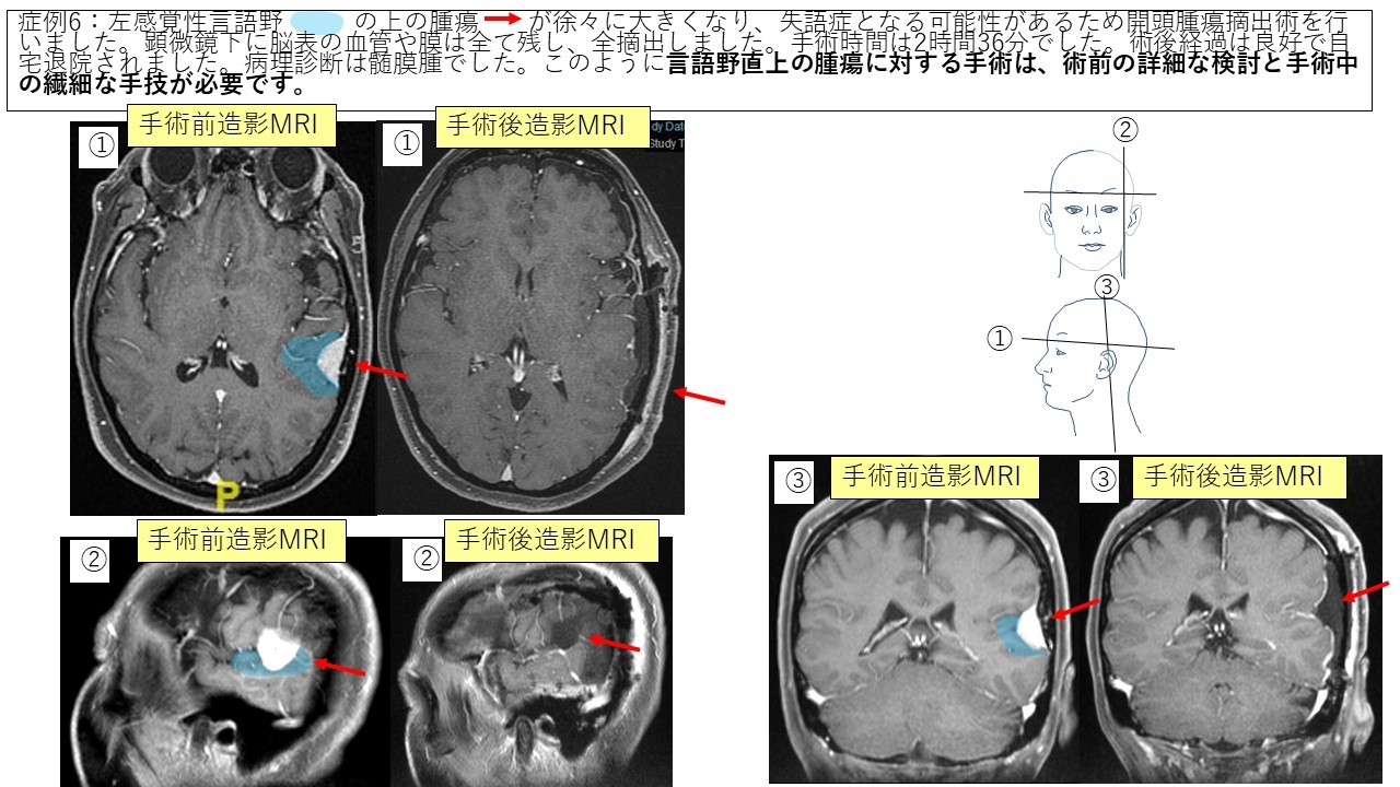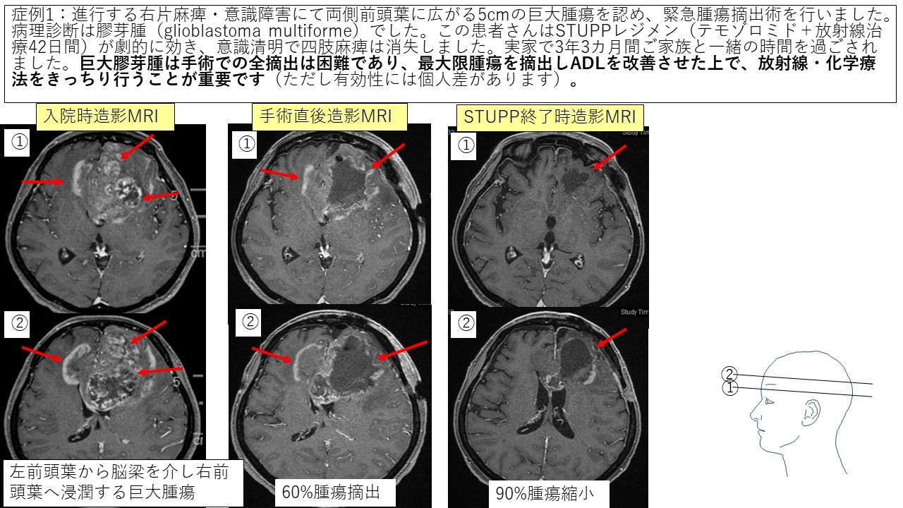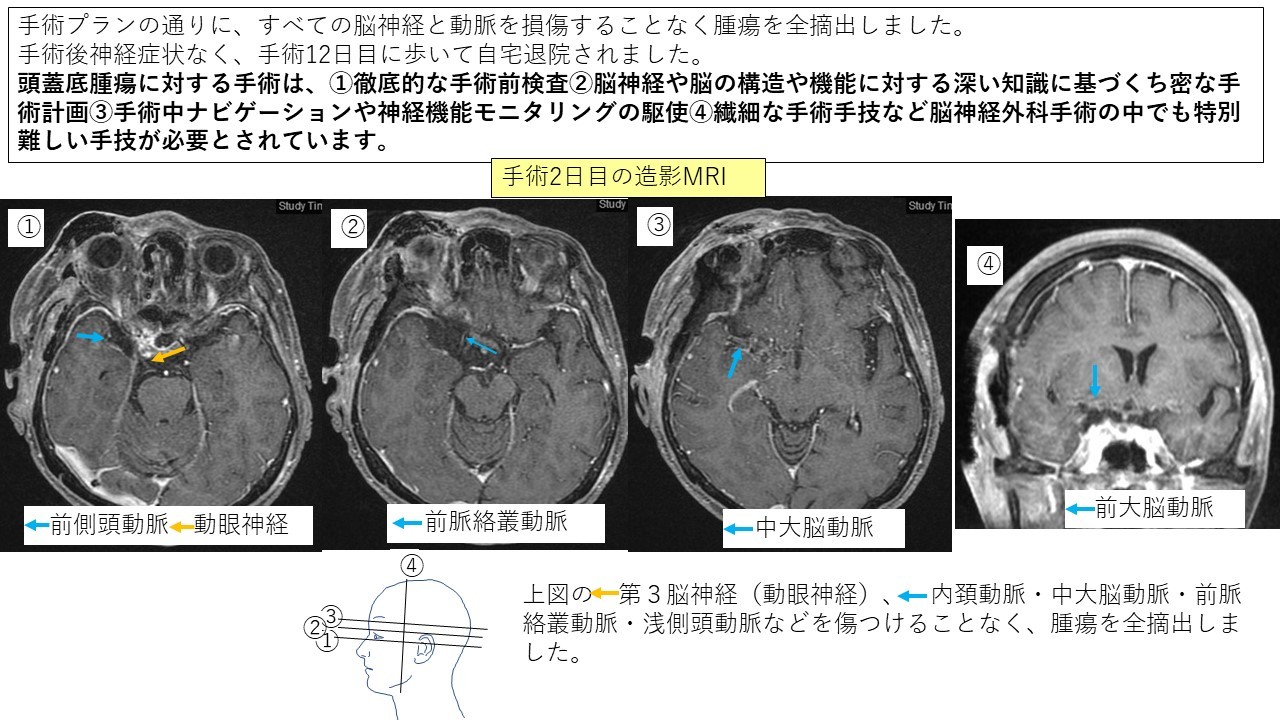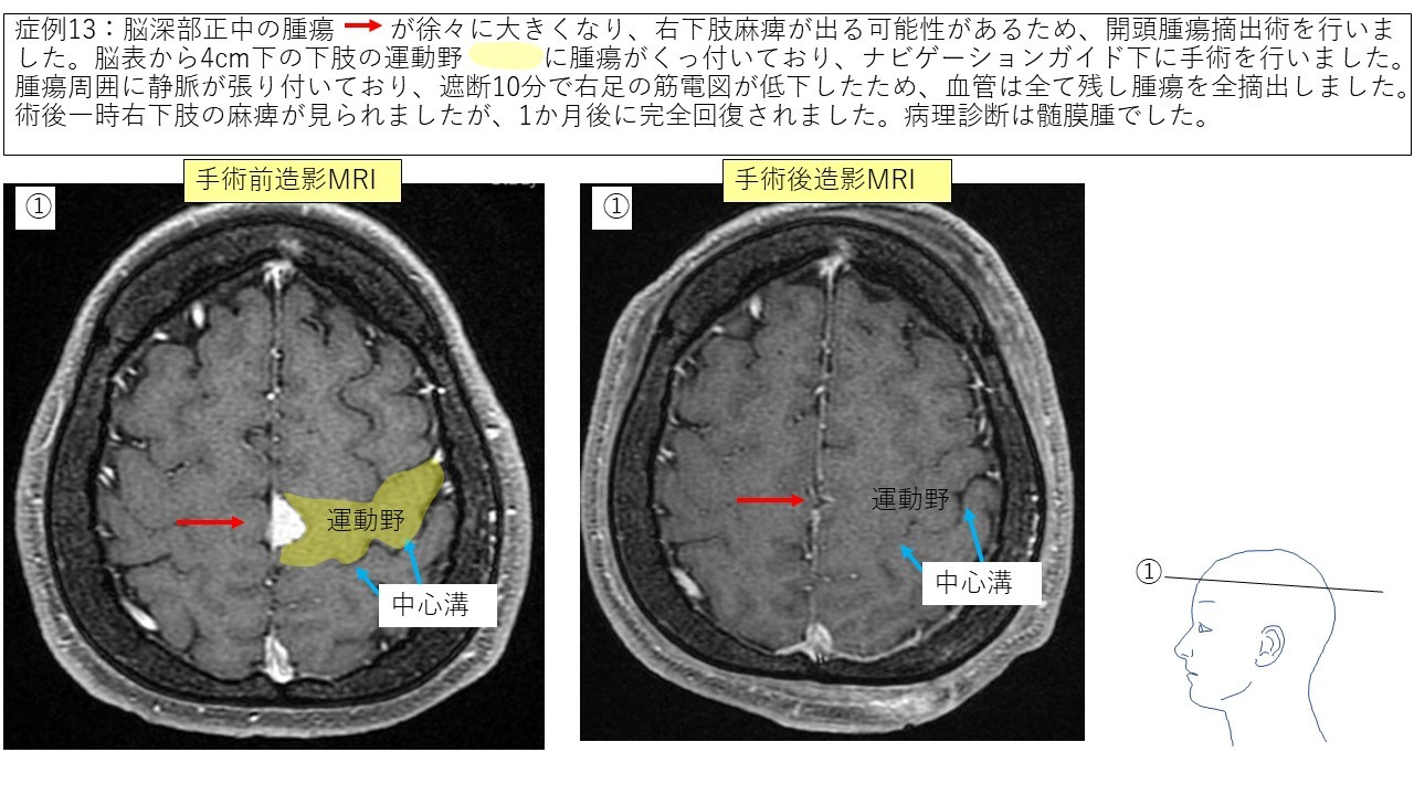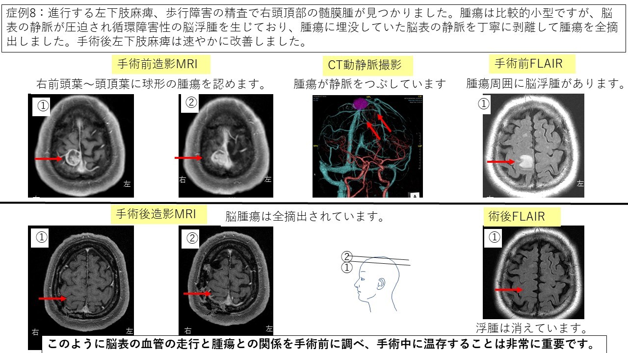 実際に最近三井記念病院で手術を受けられた脳腫瘍の患者さんの経過をお示しします(術者は全て中口です)。