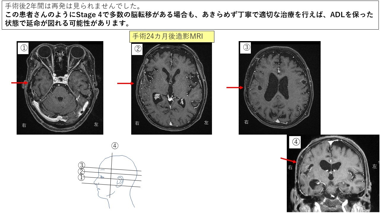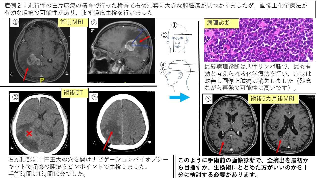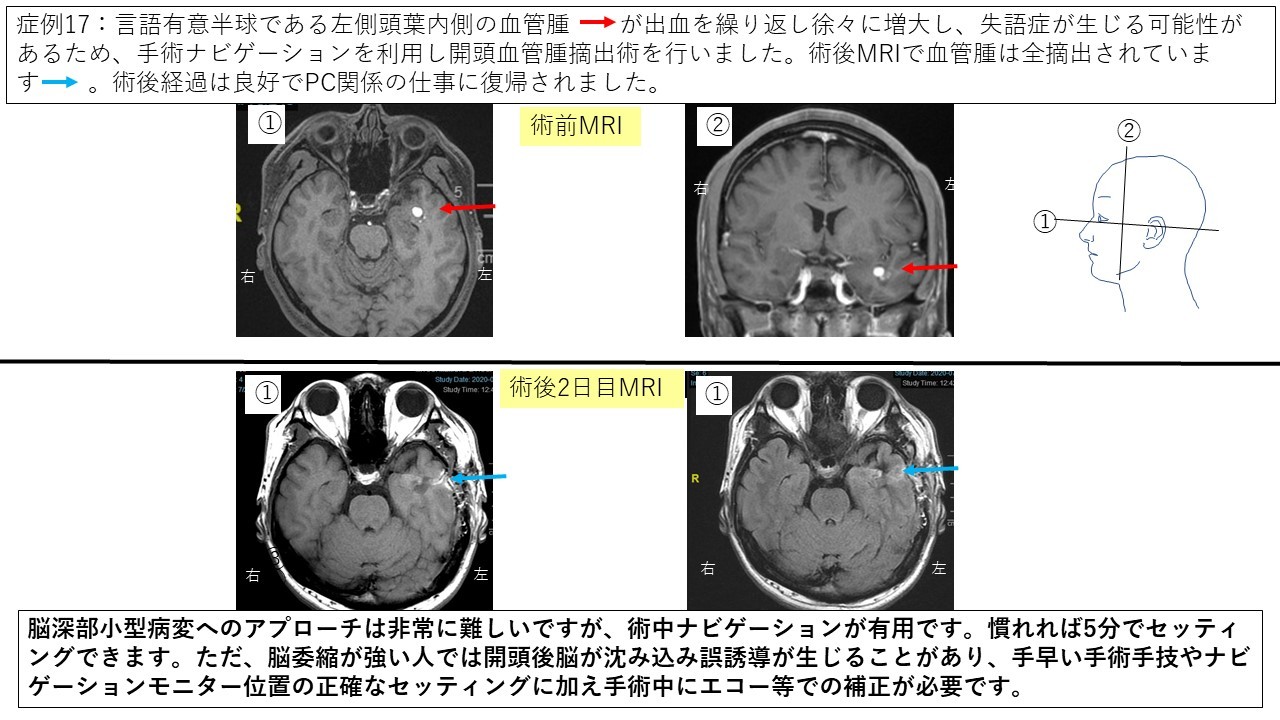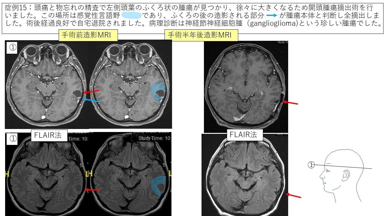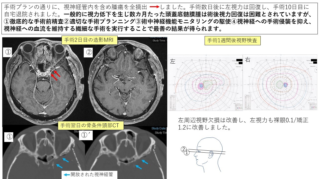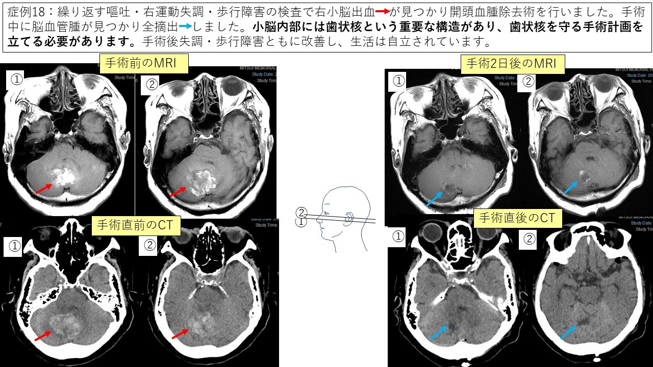 実際に最近三井記念病院で手術を受けられた脳腫瘍の患者さんの経過をお示しします(術者は全て中口です)。
