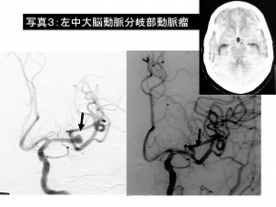脳動脈瘤が6mm以上の大きさの場合や、脳動脈瘤の先端がとび出し破裂しやすい形の場合は、くも膜下出血になりやすいと考えられています。
