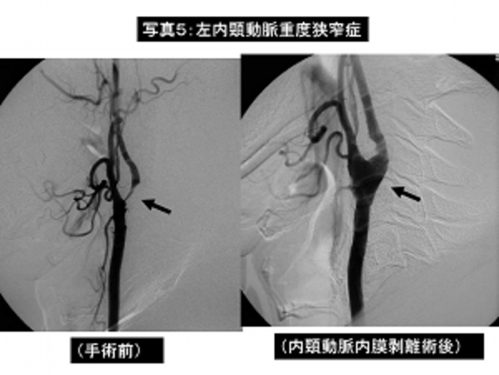 写真5:左重度内頸動脈狭窄症に対する左内頸動脈内膜剥離術。
