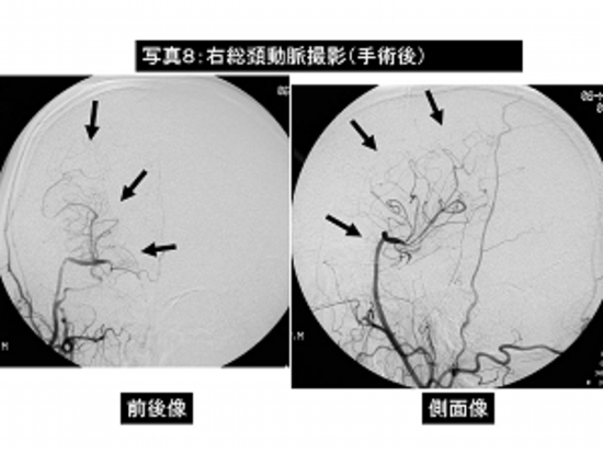 左は手術前の脳血管撮影、右は手術後の脳血管撮影です。