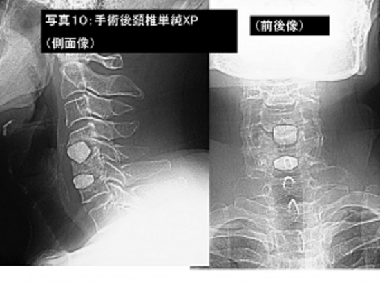 写真10:写真9の患者さんの手術後の頚椎単純レントゲン撮影像です。