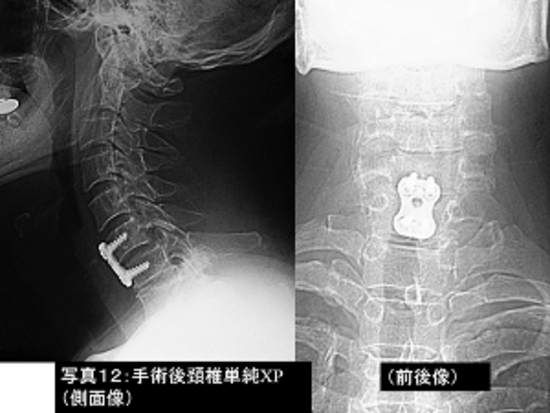 写真12:写真11の患者さんの手術後の頚椎単純レントゲン撮影像です