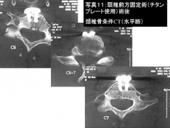 写真11:頚椎骨折(交通事故)に対し前方固定術(チタンプレートを使用)を行いました。